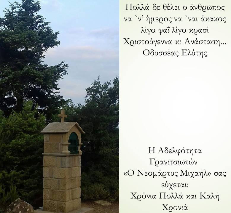 Το 2017 ήταν μια ακόμη δύσκολη χρονιά που δοκίμασε τις αντοχές μας, ως άτομα και ως κοινωνία αλλά ταυτόχρονα ανέδειξε και τις αξίες που μας χαρακτηρίζουν όπως η αλληλεγγύη, η αγάπη η ομόνοια η βοήθεια στον συνάνθρωπο μας η συντροφικότητα η φιλοξενία και το φιλότιμο σήμα κατατεθέν του Ελληνικού στοιχείου.