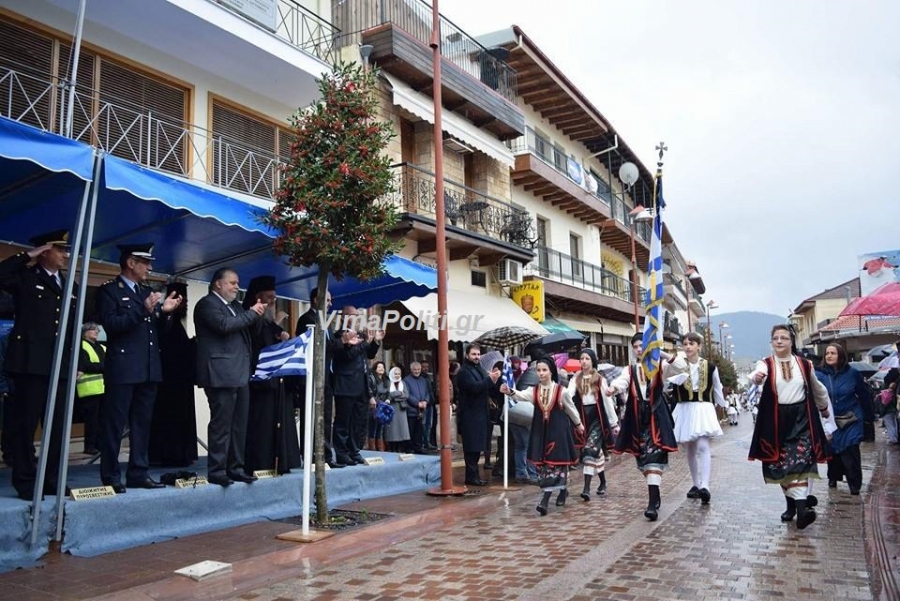 Ώρα 11.15: Παρέλαση επί της κεντρικής οδού Εθνικής Αντιστάσεως μαθητών Πρωτοβάθμιας και Δευτεροβάθμιας Εκπαίδευσης και μελών συλλόγων του Νομού Ευρυτανίας.