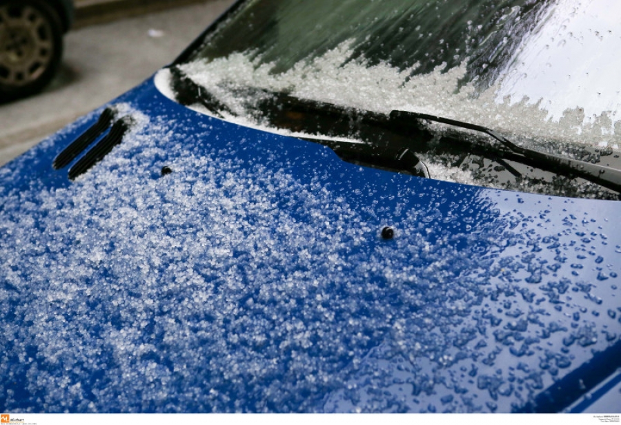 Στο Καρπενήσι οι δρόμοι... άσπρισαν, αφού καλύφθηκαν με μια λεπτή στρώση χαλαζιού.